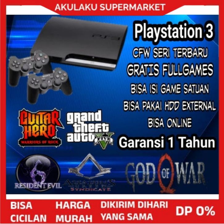 PS3 SLIM SONY PLAYSTATION 3 1000GB FULL GAME UPDATE TERBARU 2 STIK WIRELLES