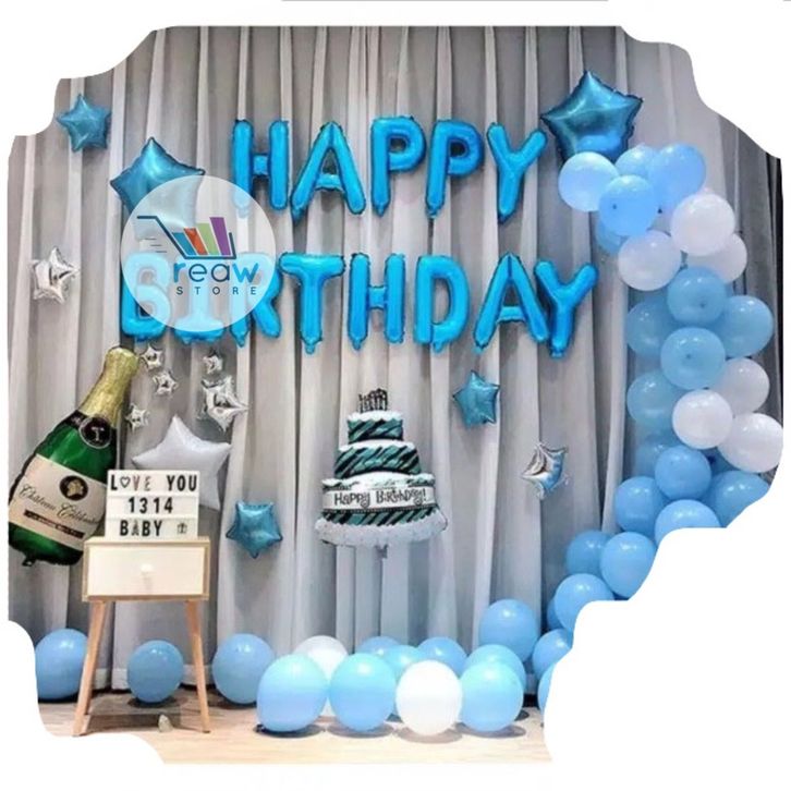 PAKET DEKORASI HIASAN BALON ULANG TAHUN / HAPPY BIRTHDAY BIRU 06