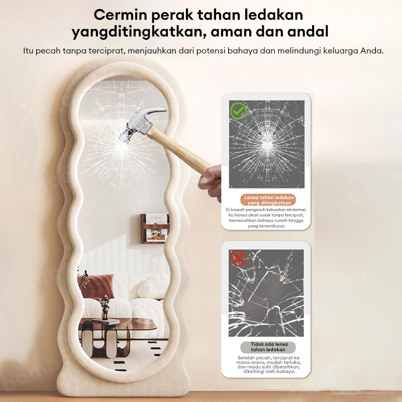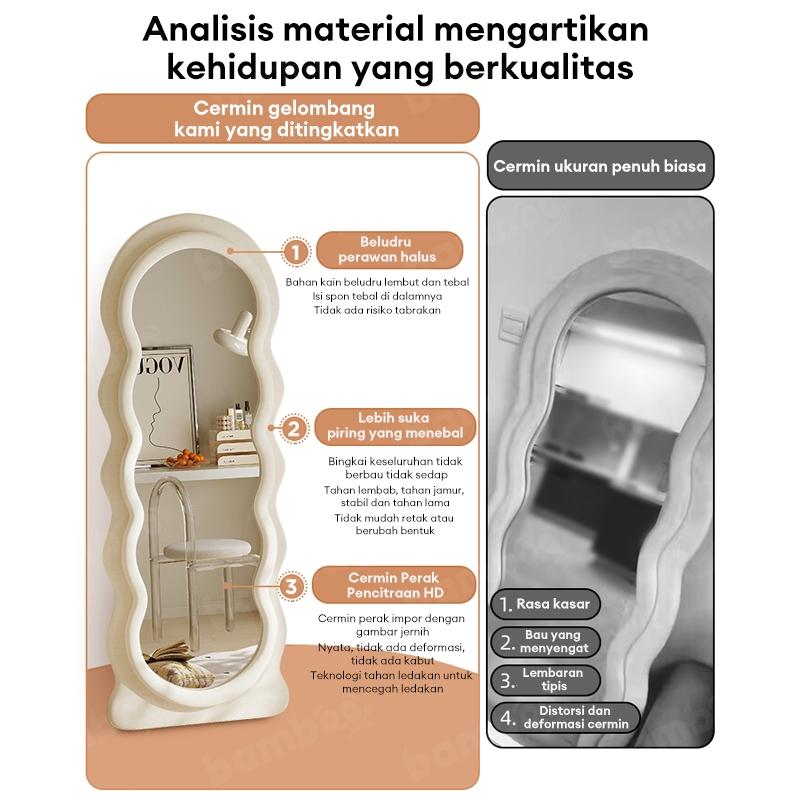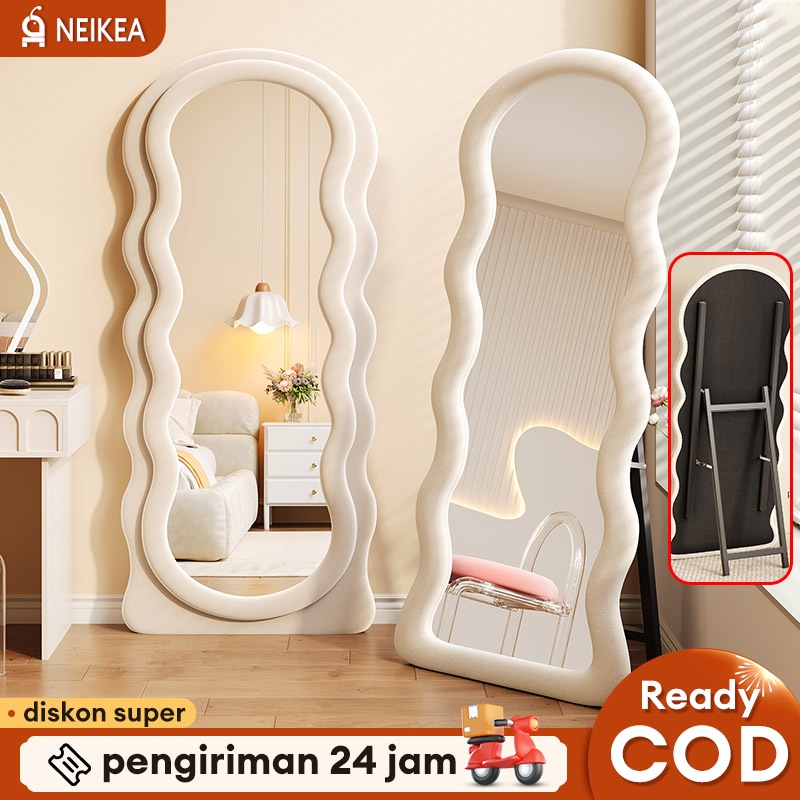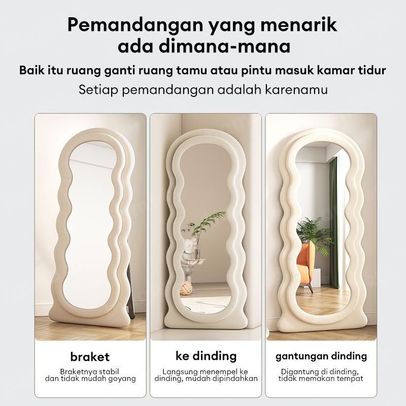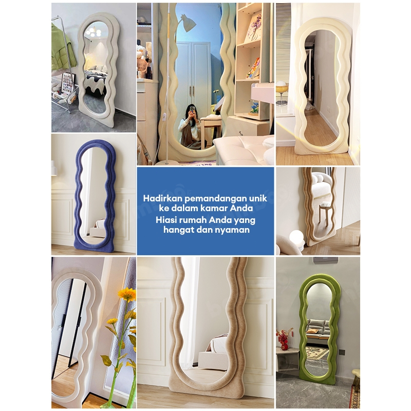 Cermin Aesthetic Cermin Full Body Standing Mirror Cermin Dinding Cermin Full Body Lucu Cermin Standing Cermin Estetik Irregular Wavy Mirror