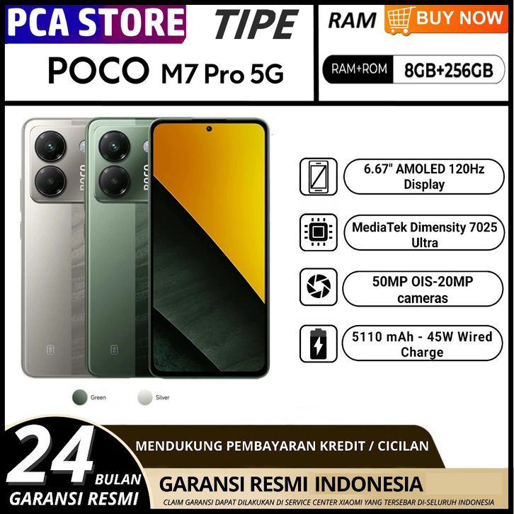 POCO M7 PRO 5G 8/256GB GARANSI RESMI XIAOMI Dimensity 7025-Ultra - 5110mAh - 120Hz AMOLED - 50MP OIS | POCO M7 PRO 8/256