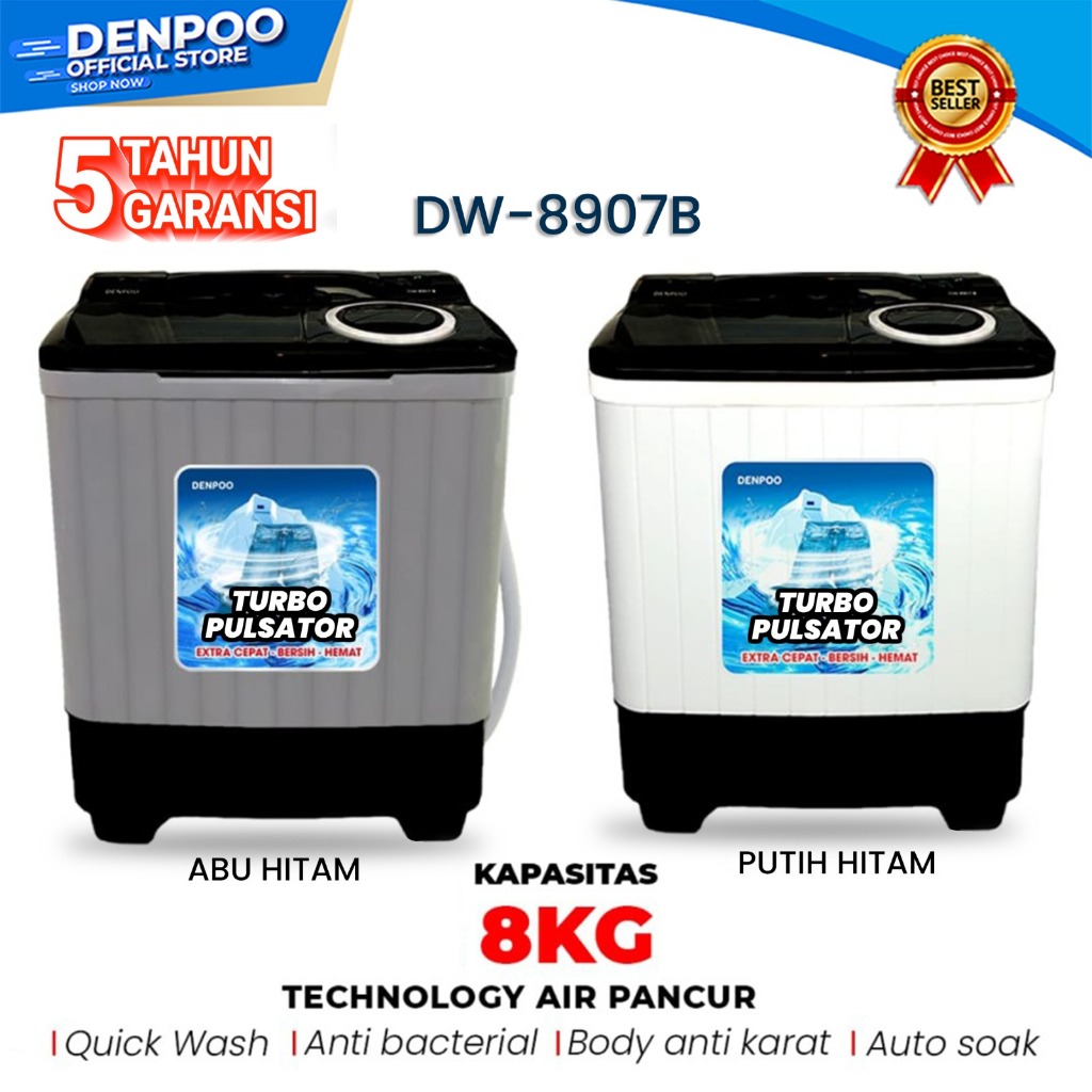 [Mall] MESIN CUCI 2 TABUNG DENPOO DW 8907B 8KG GARANSI RESMI 1 TAHUN
