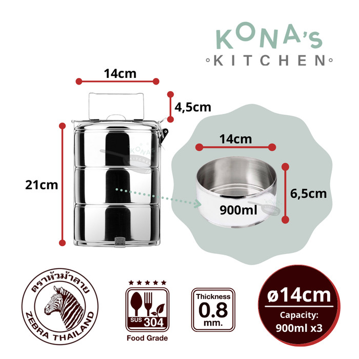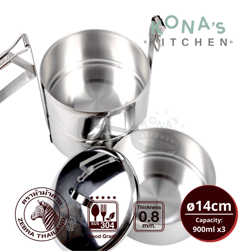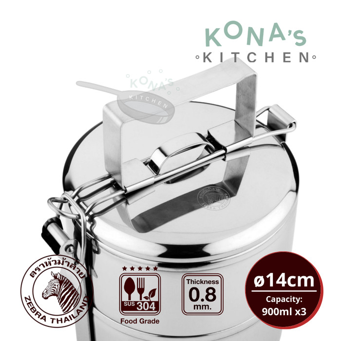 Zebra Food Carrier 14x3 (150143) / Kotak Bekal Lunch Box Rantang Mananan Stainless 14cm Tiga Susun