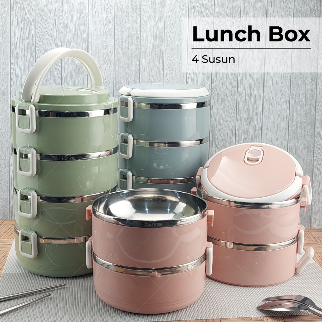Rantang lunch box 4 susun polos lucu elegan tempat bekel makanan