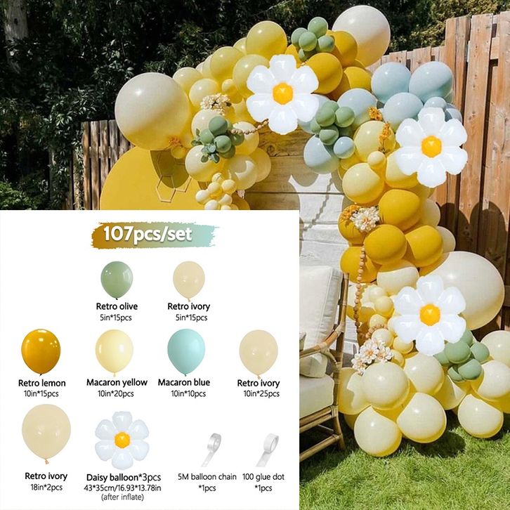 107PCS LUCU DAISY ZAITUN KUNING GADING BALON GARLAND RETRO SET UNTUK DEKORASI PERNIKAHAN ULANG TAHUN