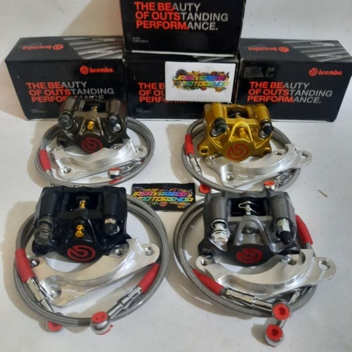 Paketan MURAH BANGET Kaliper Brcmbo Big Logo 2Piston 2P Babet + Breket 2P Disc Standar 200mm + Selang Rem Silver Depan