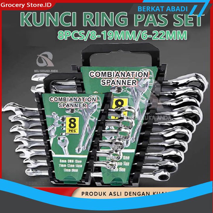 Kunci Ring Pas Set 8 Pcs8-19MM( 6 -22 MM ) Lengkap Murah - Kunci Ring Set 8 pcs Double Offset Ring Spanner Set Kunci