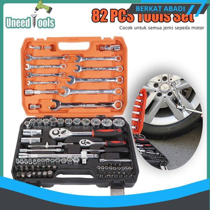UneedTools 82pcs Kunci Shock Set alat kunci pas soket Set untuk Semua Jenis Sepeda Motor Kunci Pas Soket