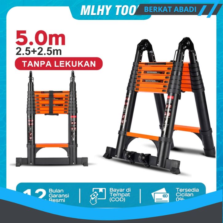 MLHY Tool Tangga Teleskopik(2.5+2.5)5M Aluminium Double Telescopic Ladder 5 Meter Tangga Lipat Alumunium Portabel Rumah