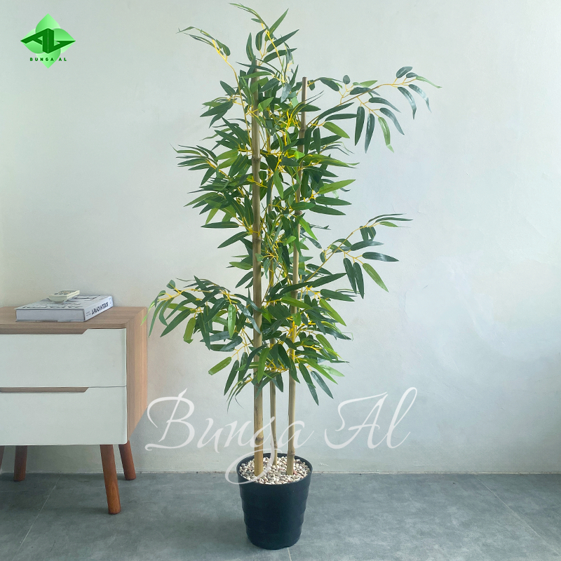 1 Set pohon hias daun bambu kuning hijau latex 160cm / 110cm hiasan ruang tamu rumah caffe aesthetic RB6154