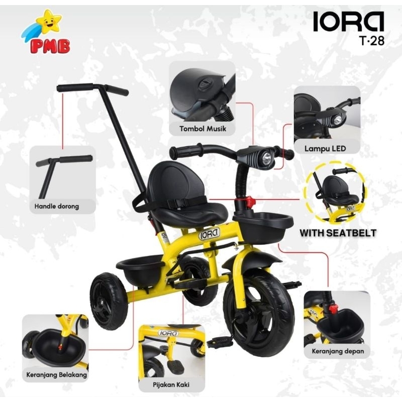 Sepeda Anak Roda Tiga PMB T28 IORA Musik Lampu T 28