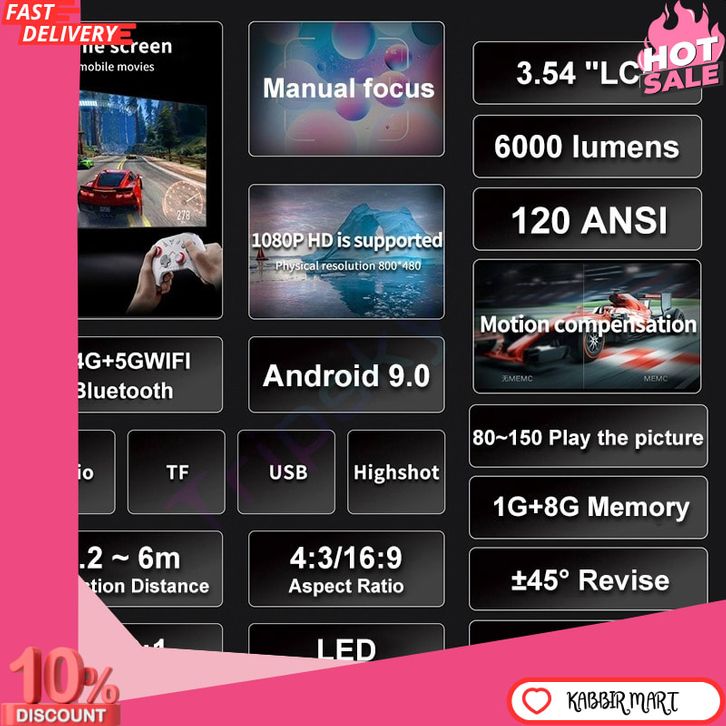 Wuzhi Audio T2mini Proyektor Android TV 1080P Smart Projector 6000 Lumen Android 90 Ram 2G Rom 16G Proyektor Mini K