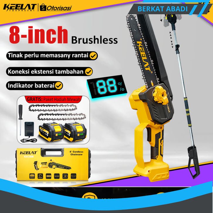 KEELAT KEC008 Brushless 8 Inch Cordless Chainsaw Electric Saw Chainsaw Battery Wood Cutter Gergaji Elektrik