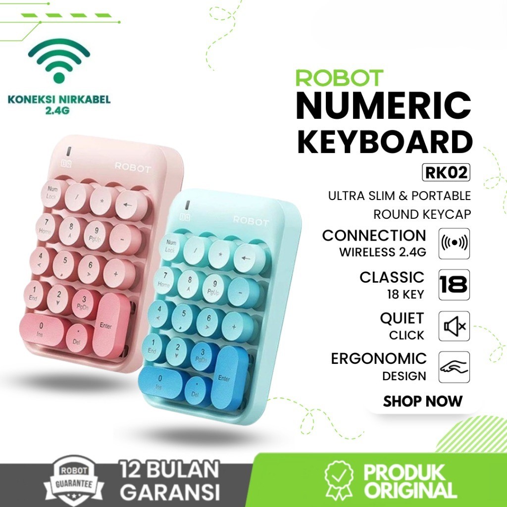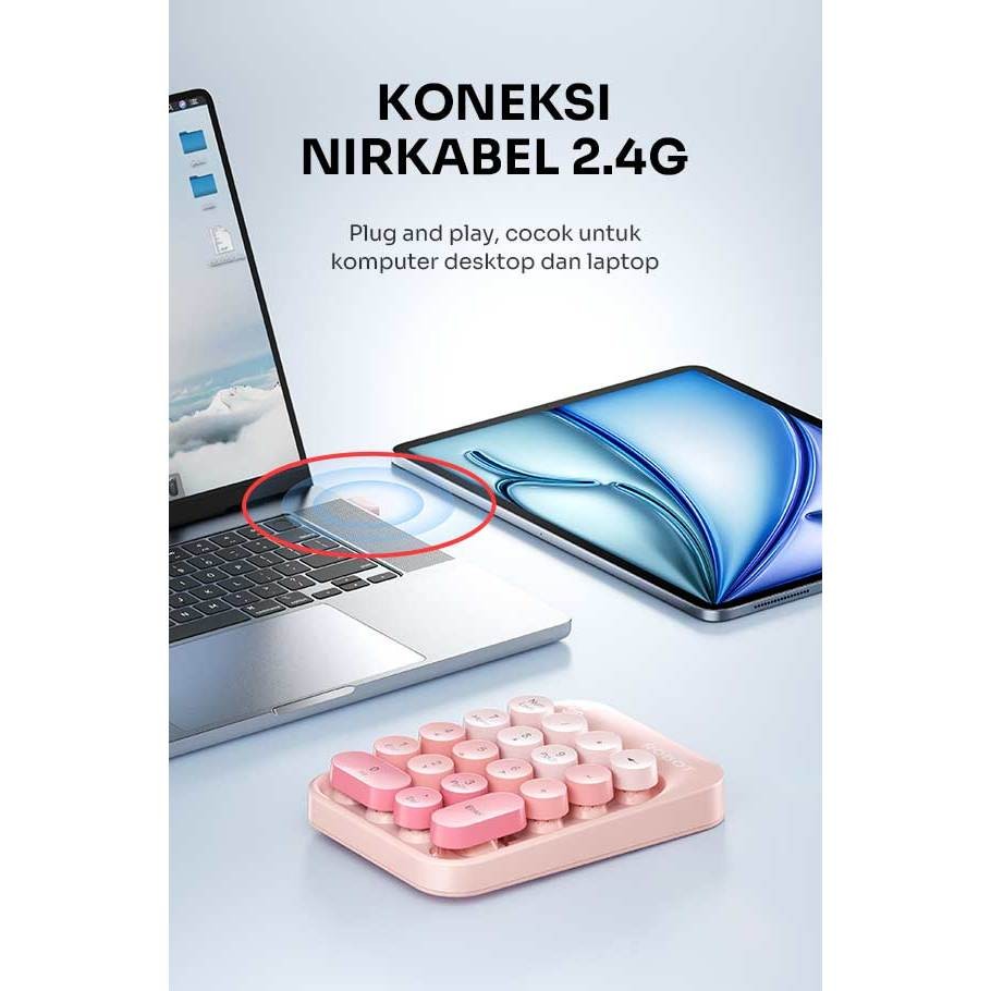 ROBOT RK02 Keyboard Numeric Wireless Tanpa Kabel Koneksi 2.4G Keyboard Angka Kecil Mini Portable Warna Pastel 18 Key Tom