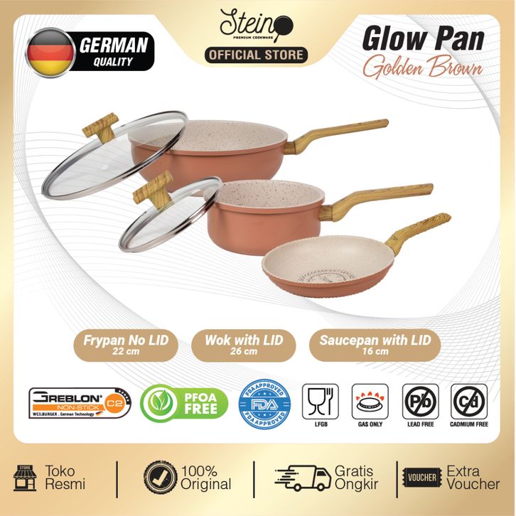 STEIN Glowpan Set 5in1 Wood Handle - Panci Set Lapisan Marbel