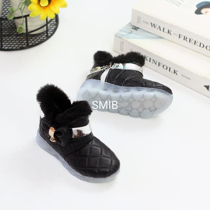 SEPATU BOOTS BULU ANAK PEREMPUAN SUNLIEE KIDS MOTIF PITA LONCENG HATI / YT-16 - PINK, 29
