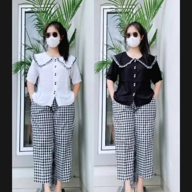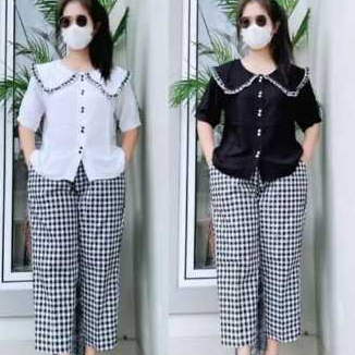 Stelan Naomi Pakaian Oneset Wanita Kekinian Bahan Katun kotak Berkualitas
