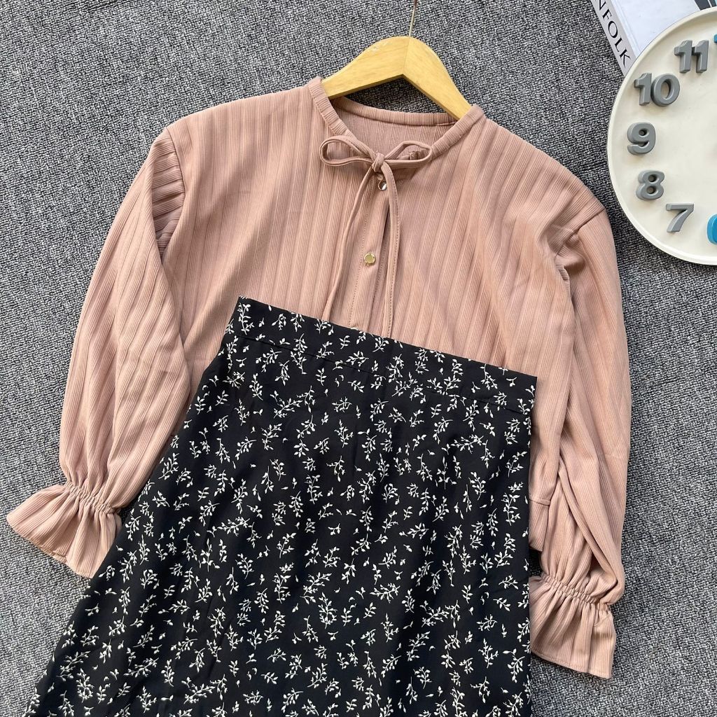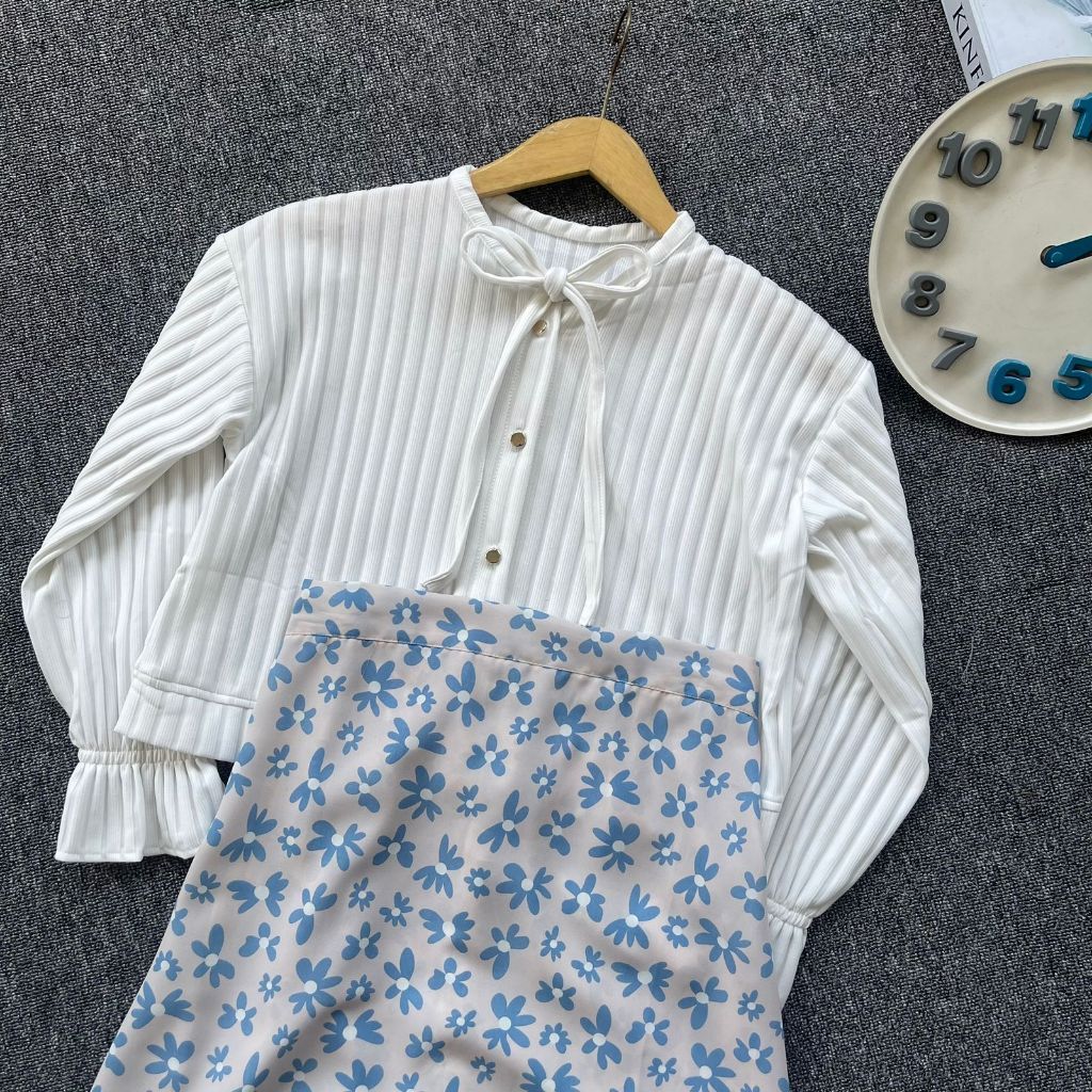 grosir_solo || SETELAN ONE SET 2in1 ROK FLORAL KOREAN SKIRT MOTIF BUNGA + CARDIGAN ALIA CROP HORNET / SETELAN CARDI KEKI