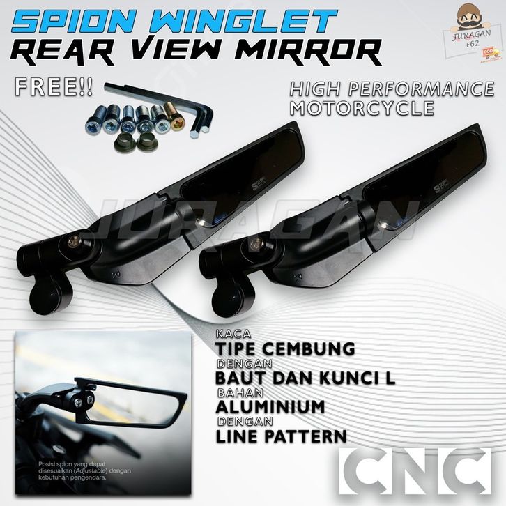 SPION WINGLET MATIC BEBEK BEAT VARIO PCX NMAX FILLANO FAZZIO MIO SCOOPY KACA CEMBUNG UNIVERSAL CNC