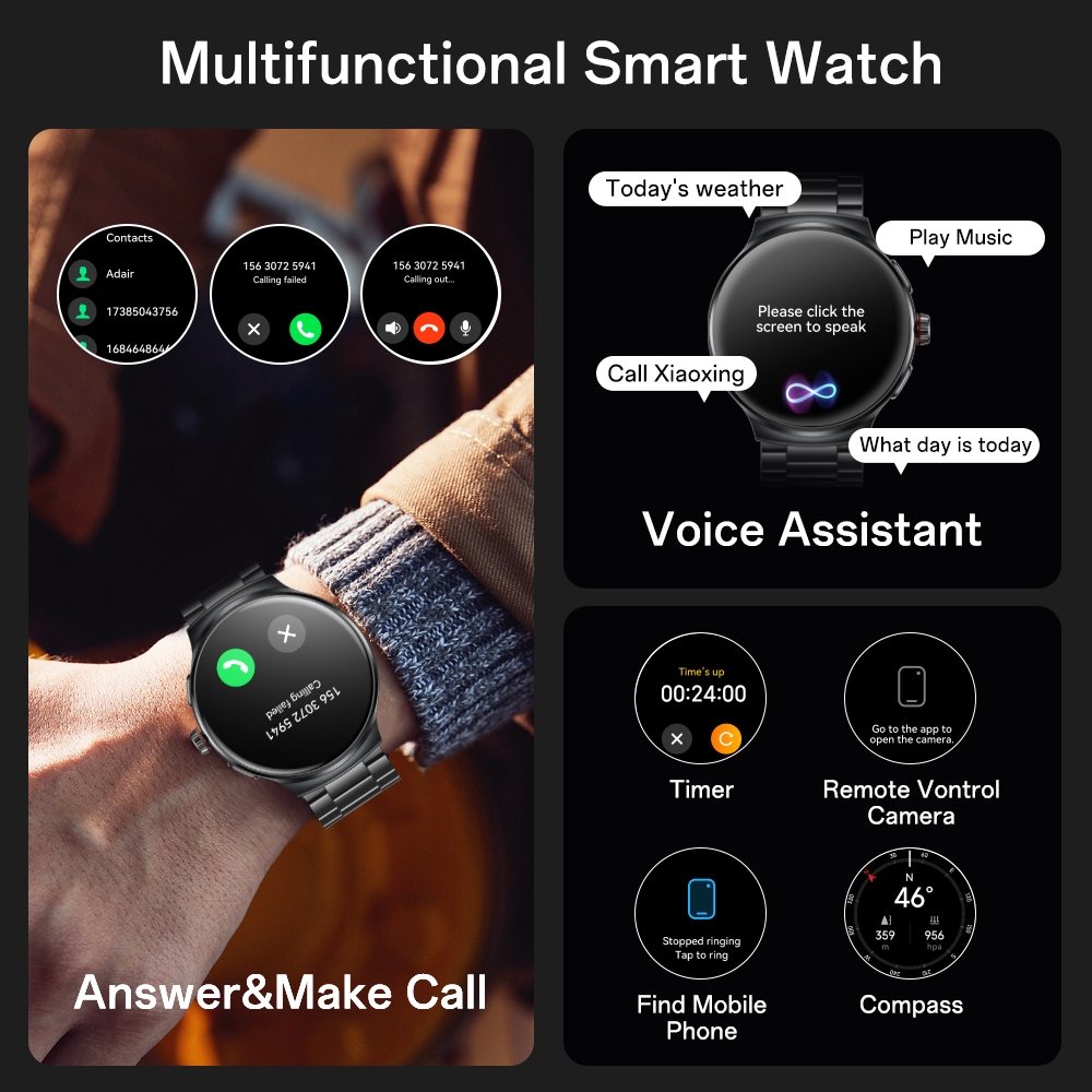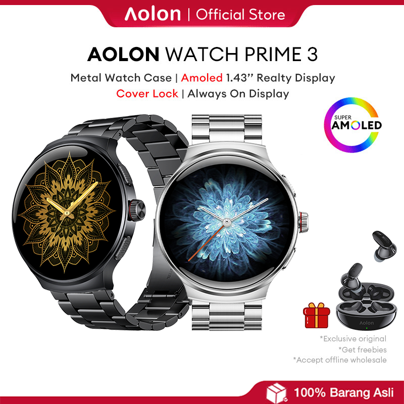 【Gift TWS】Aolon 2025 New Prime 3 Smartwatch Original Pria Cover Lock Amoled Screen Metal Case AOD Jam Tangan Pintar Blue