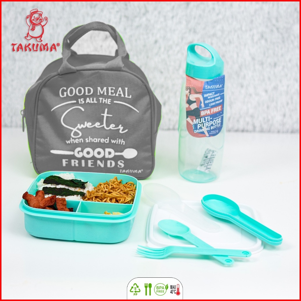 Lunch Bag Takuma 3 In 1 Paket Kotak Makan Sakura Botol Minum Venus Dan Set Sendok Garpu Eva