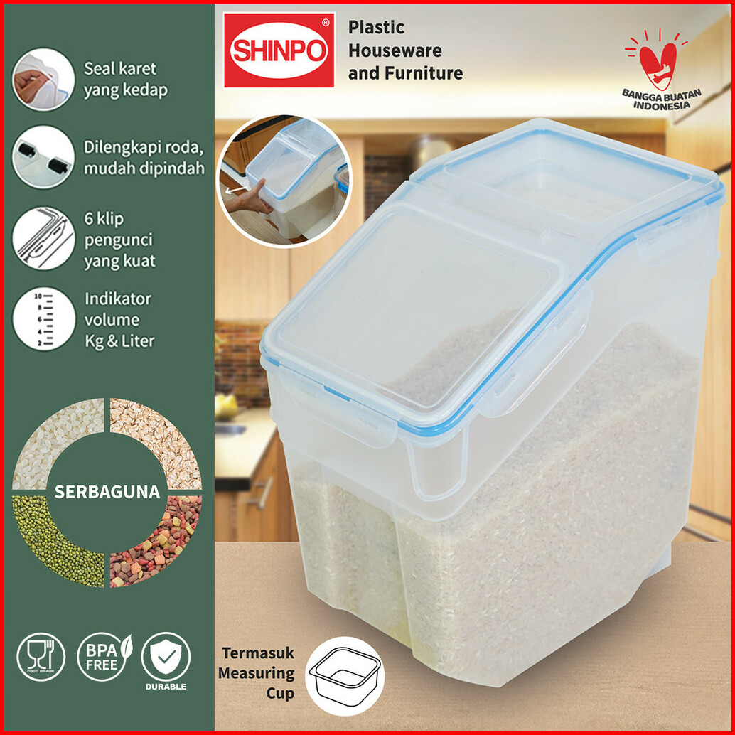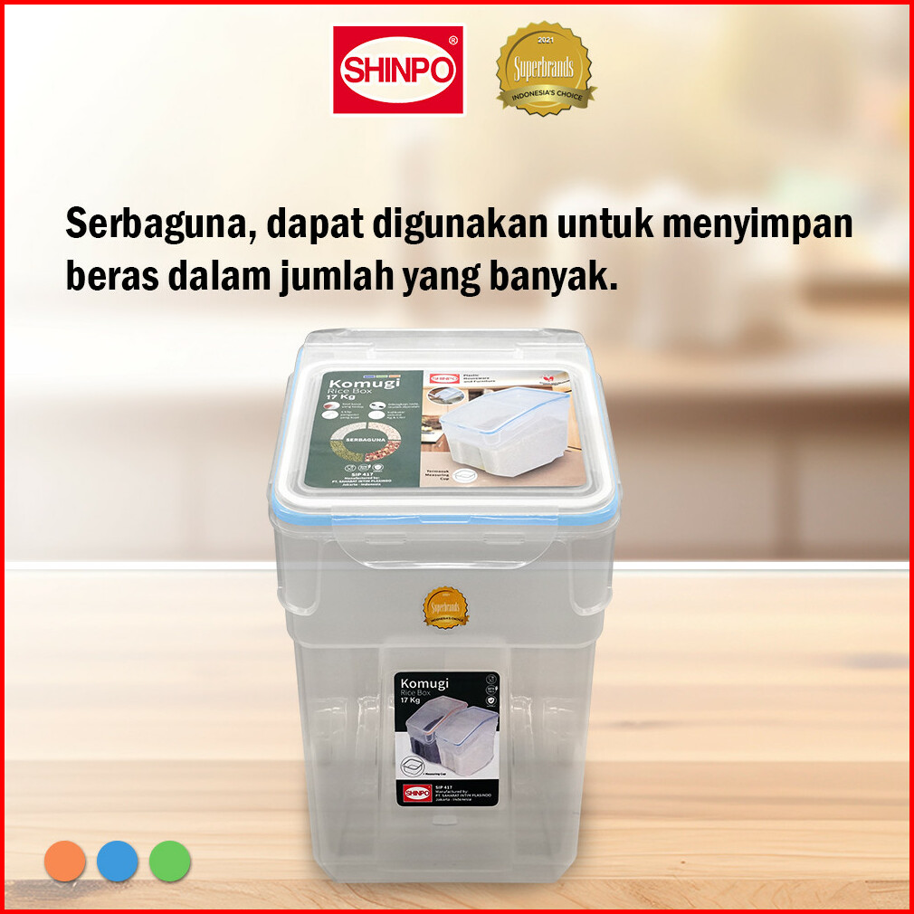 Shinpo Komugi Tempat Penyimpanan Beras 17 Kg Dengan Roda Rice Box Bpa Free Spo-sip-417