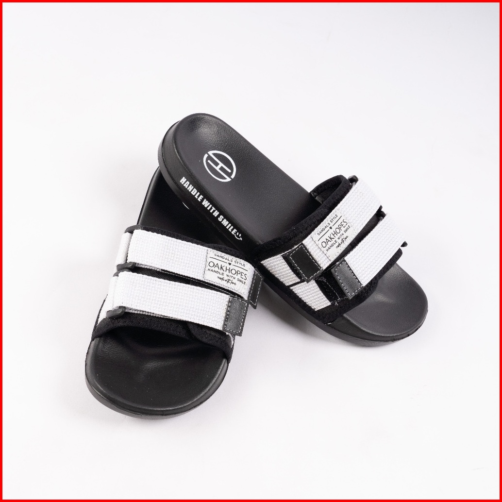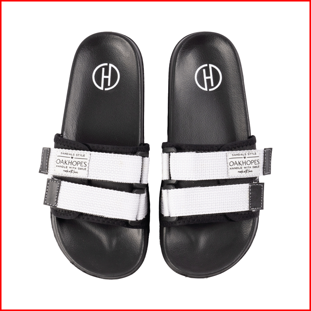 Oakhopes - Yuka Black White Sandal Pria Wanita Sendal Slop Slipper Anti Licin