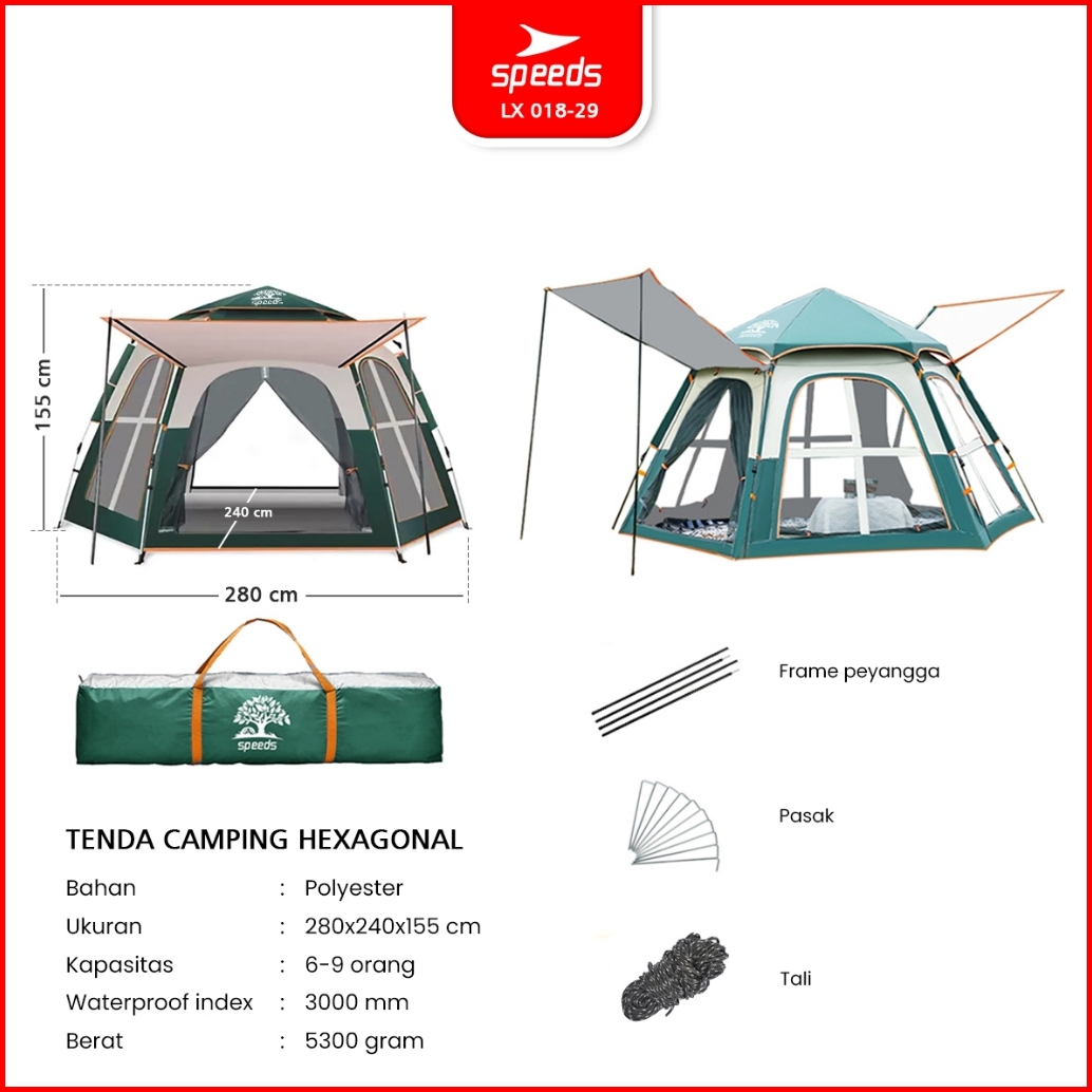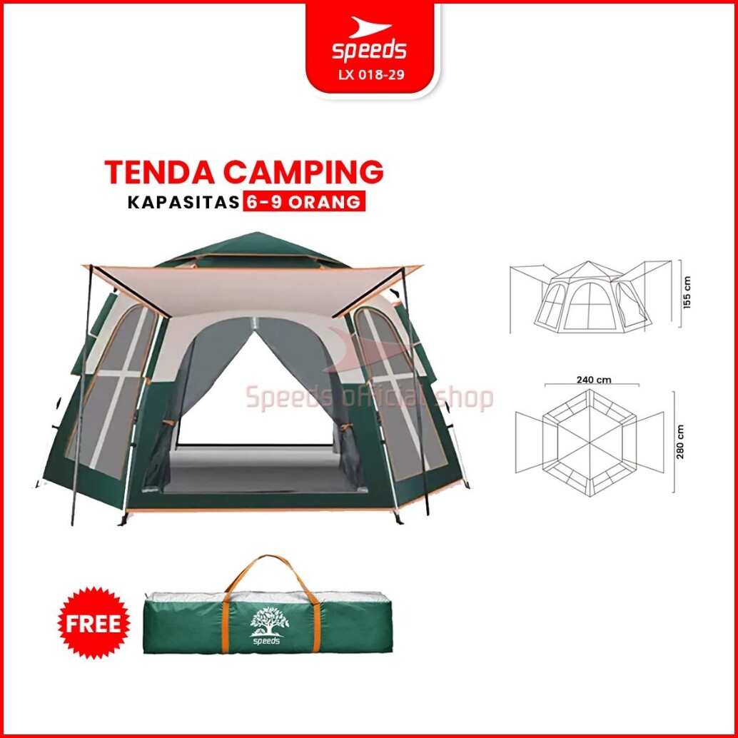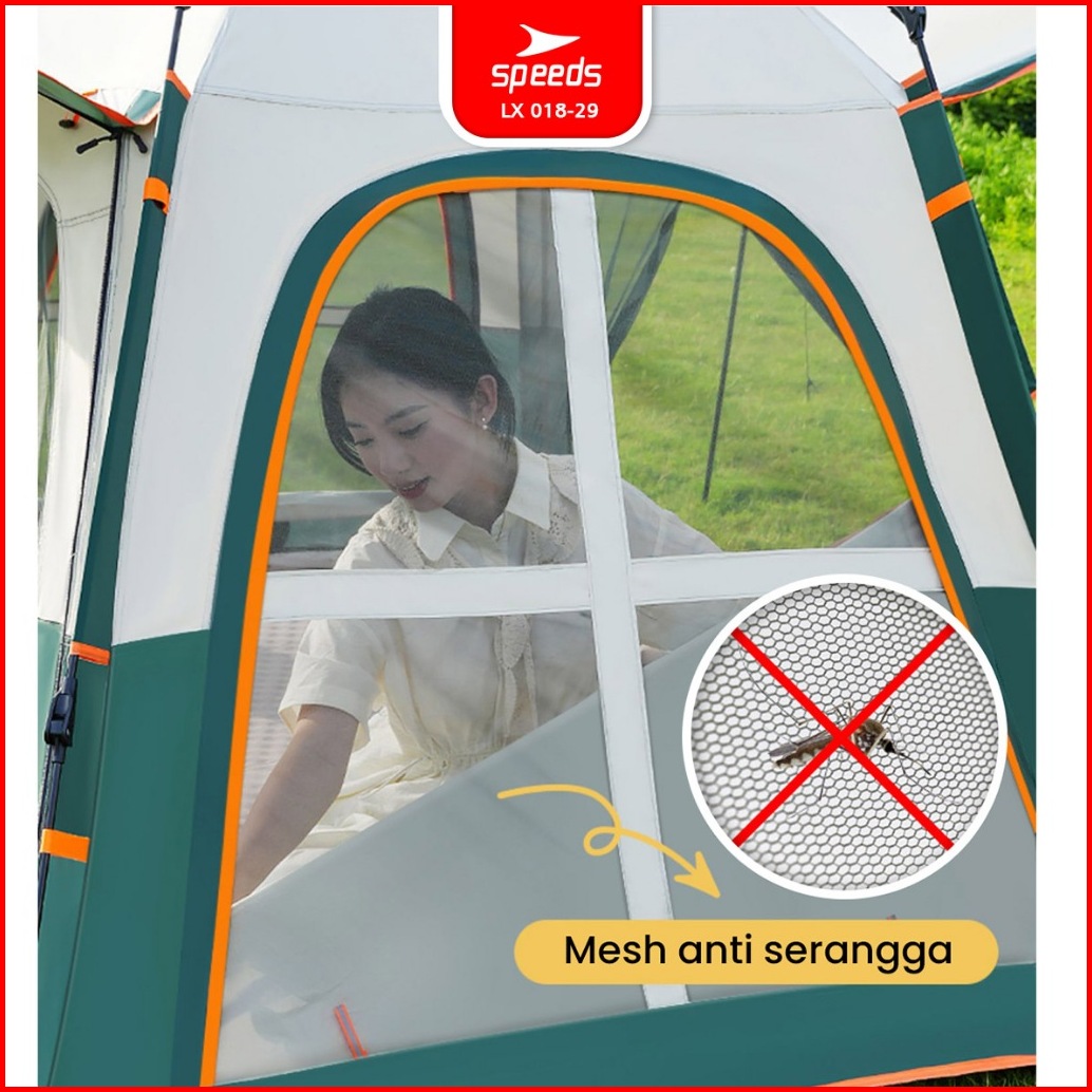 Speeds Tenda Camping Besar Otomatis Portabel Muat 6-9 Orang 2 Pintu Kemah Piknik Outdoor Kanopi 018-29