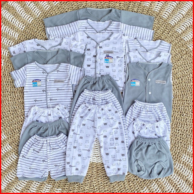 Annora - Paket Hemat 18pcs Setelan Baju Bayi Baru Lahir Newborn Seri Abu Bear Warna Lengkap