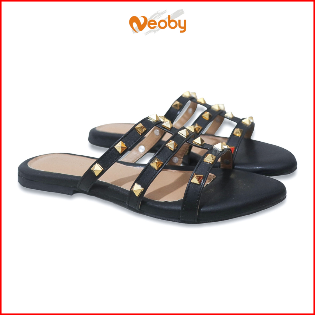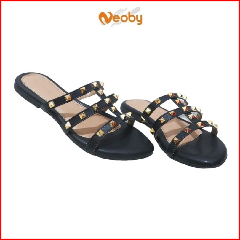 Neoby Luna Sendal Flat Wanita Tali Stud Sandal Slop Cewek Teplek