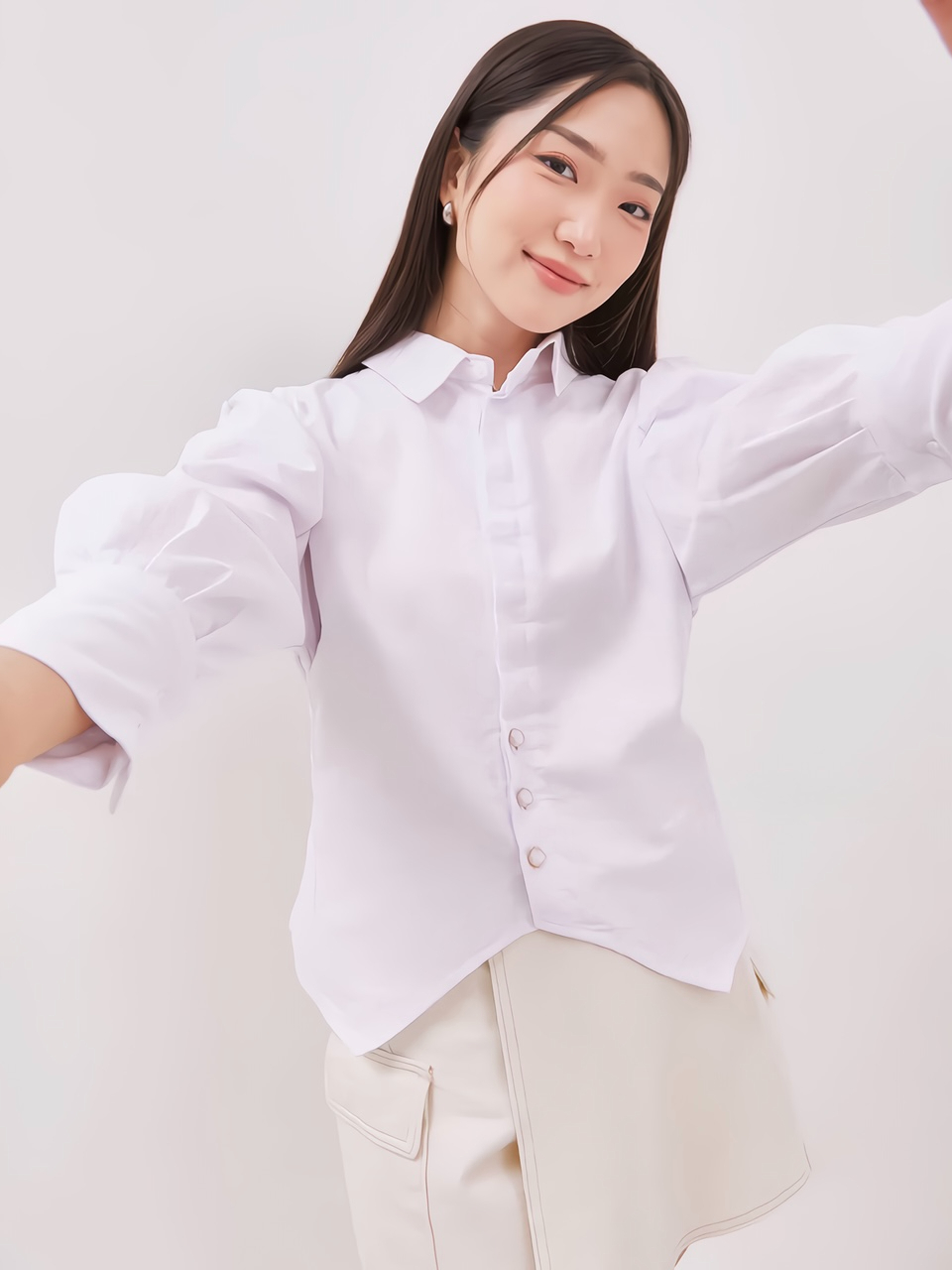 (Gratis Ongkir) Sanju Blouse - Halinka Shirt - Blouse Wanita Korean Style Linen - Kemeja Crop Lengan Panjang