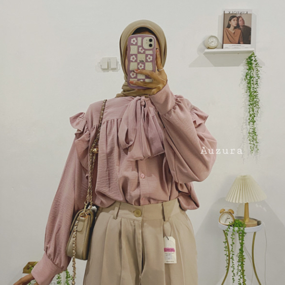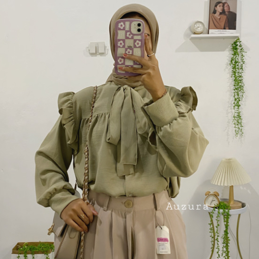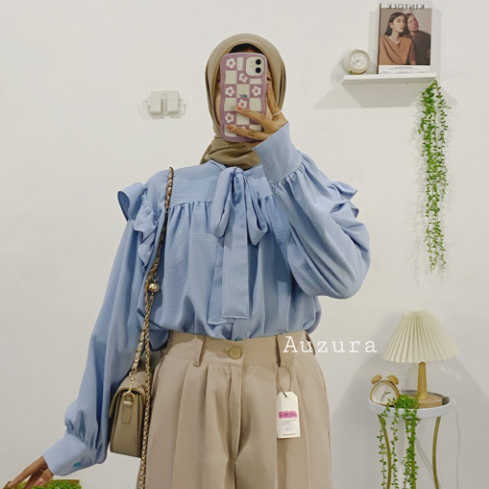 (Gratis Ongkir) Leivy Korean Blouse Airflow Crinkle atasan wanita Ruffle Pita Aesthetic