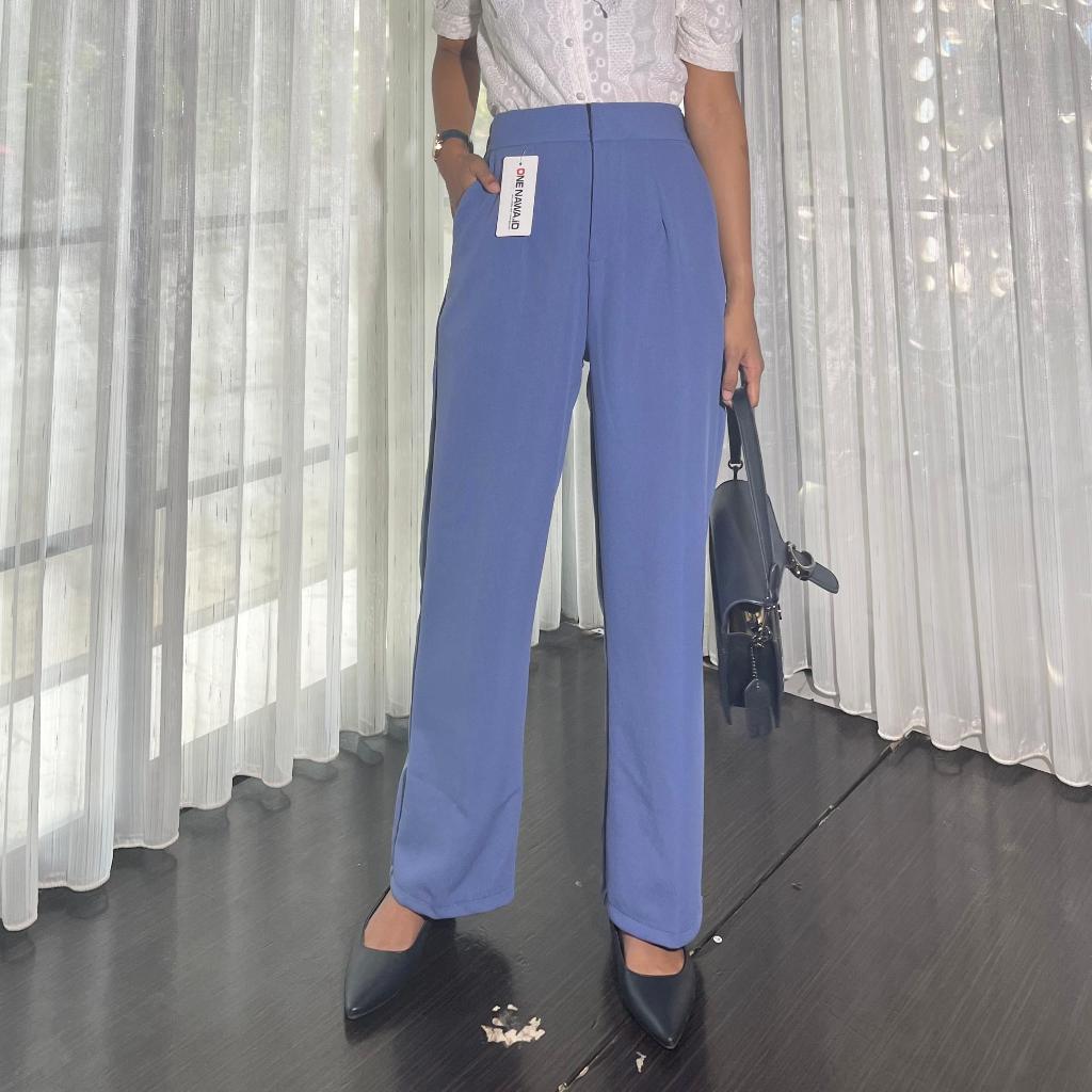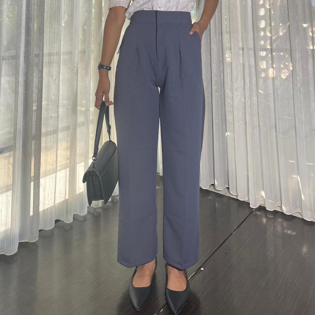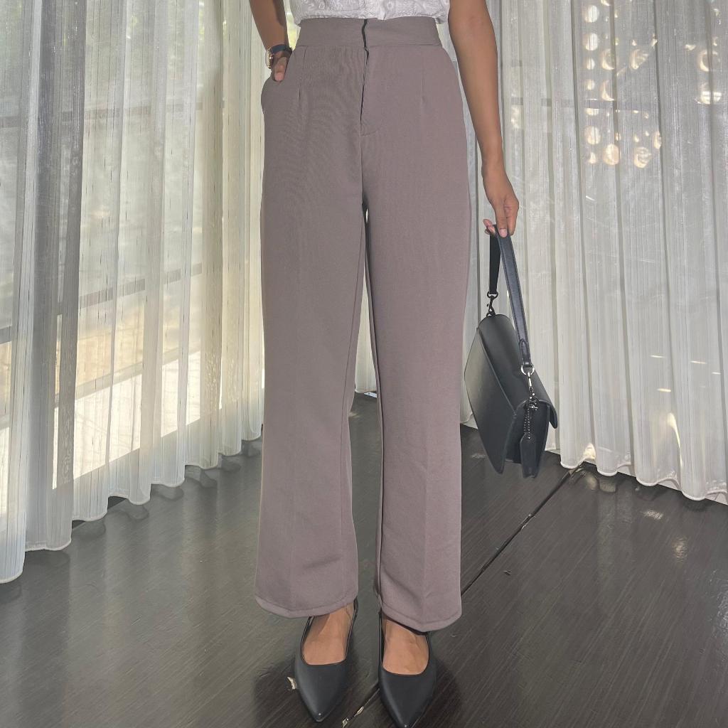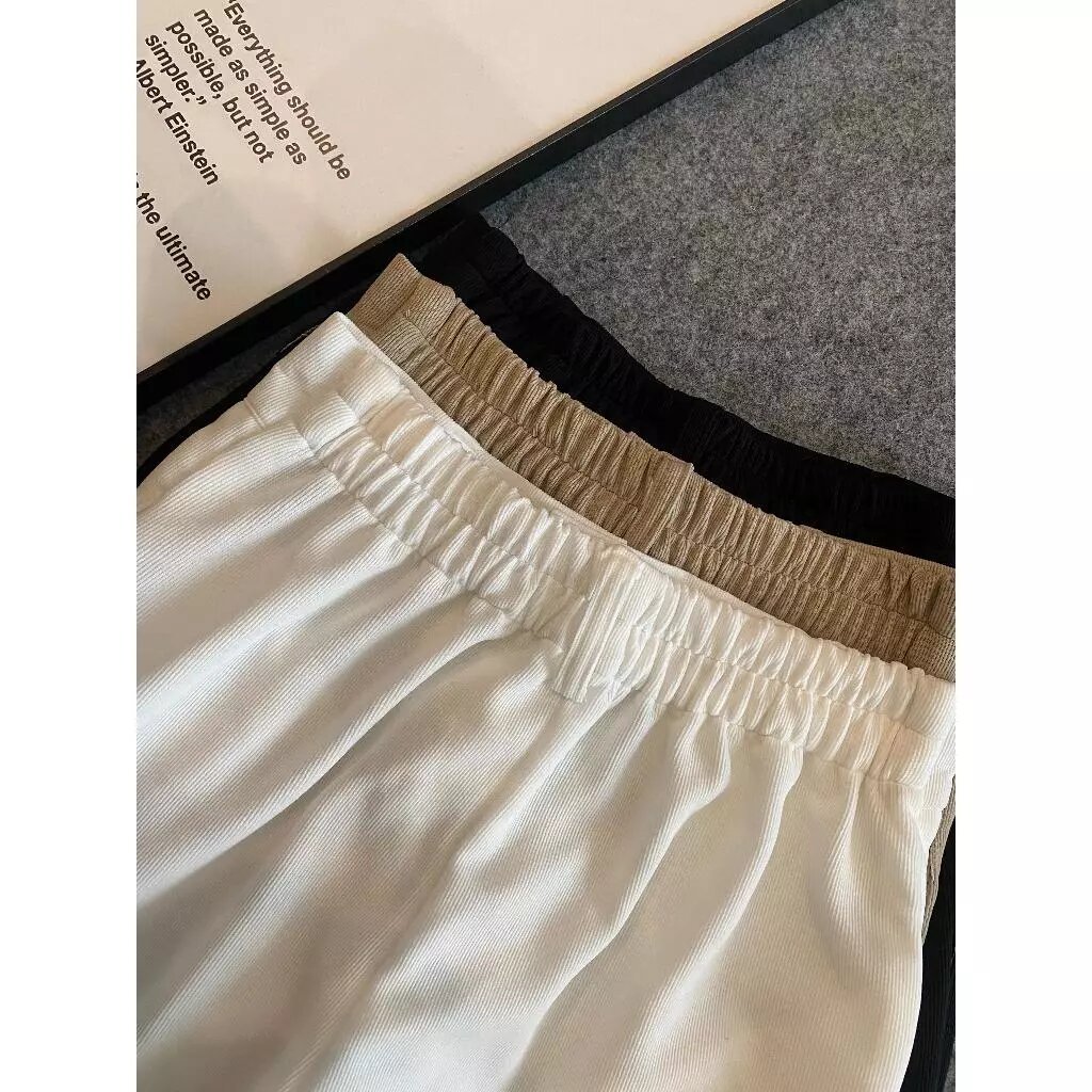 (Gratis Ongkir) Cozie Pants | Highwaist Cullote Pants - Rib Knit Pants - Hitam & Cream - Celana Anti Kusut