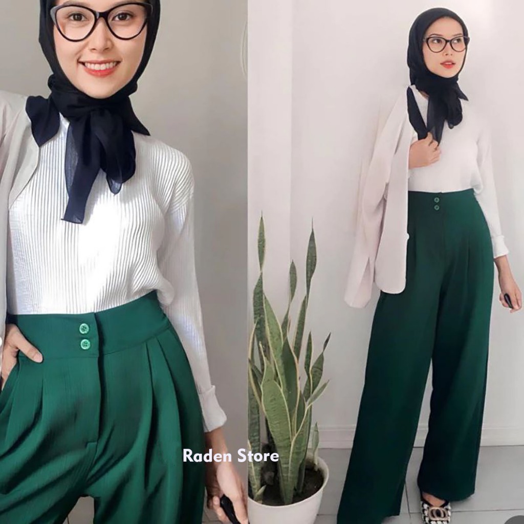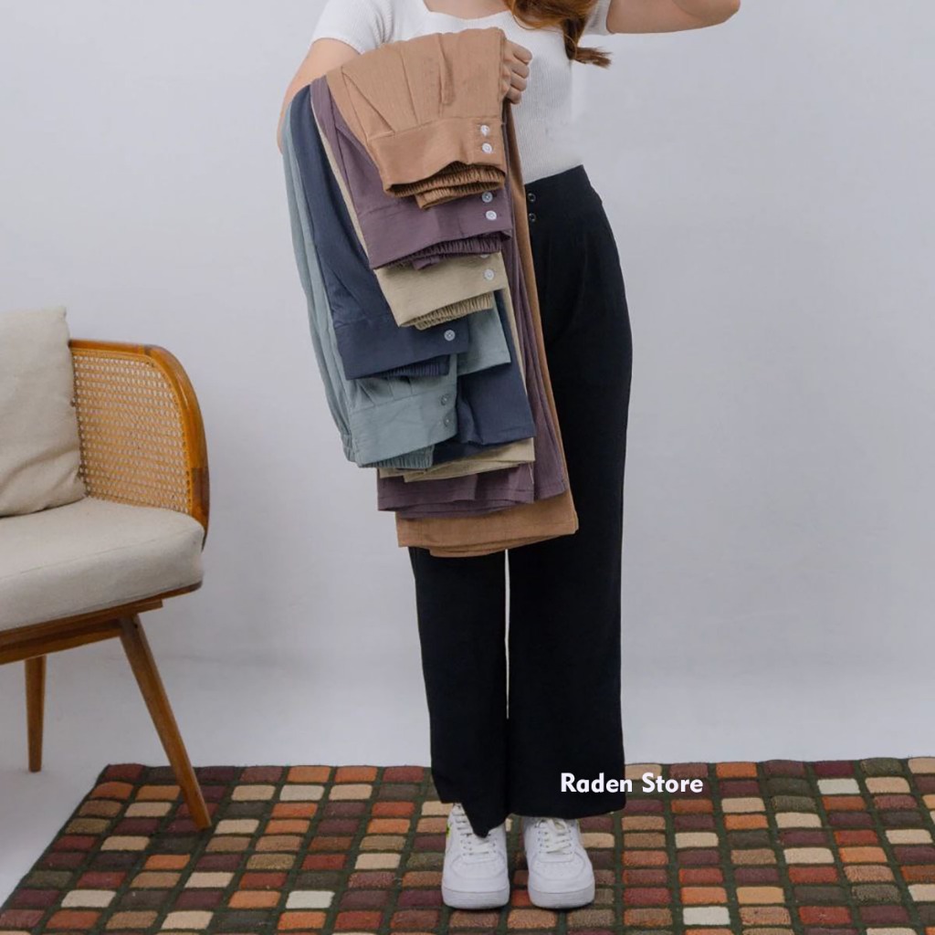 (Gratis Ongkir) Jennie Knit Pants Celana Kulot Highwaist Knit Kancing Celana Knit Wanita