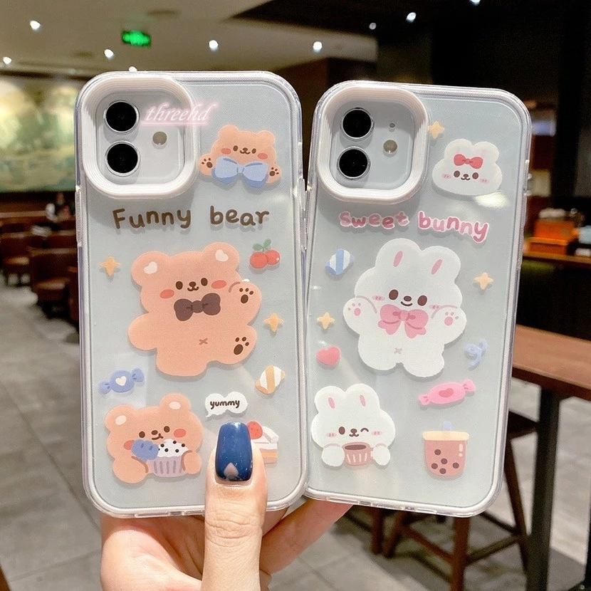 Casing Silikon Iphone 13 12 11 Pro Max Se2020 X Xr Xs Max 7 8 Plus Motif Kelinci Dan Beruang Lucu Aesthetic Terlaris