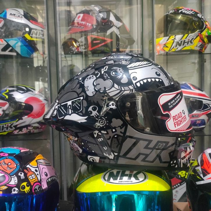 NHK HELM MARK-1 1V | DOODLES BLACK BLUE | SINGLE VISOR LIGHTSMOKE FREE TOP - M