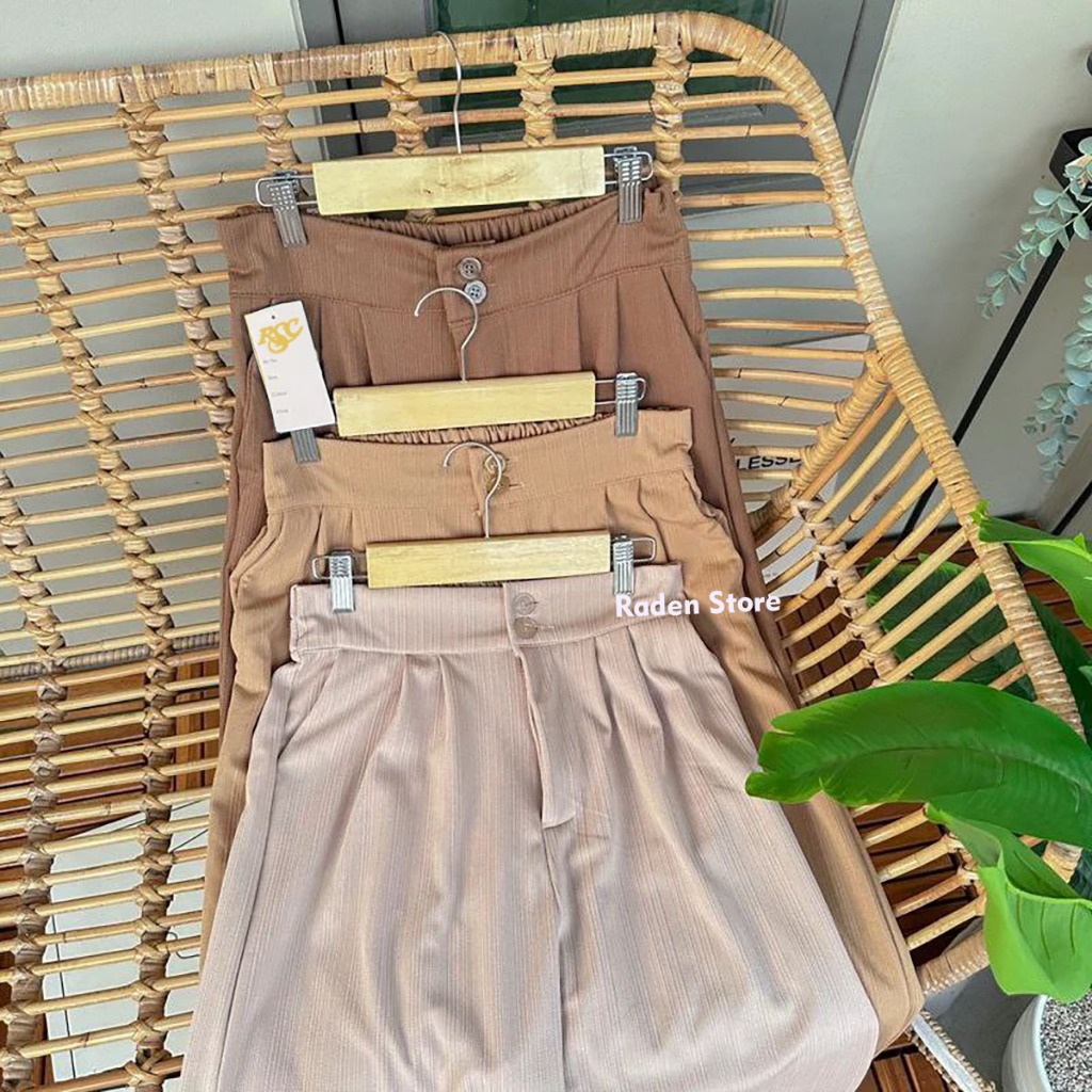 (Gratis Ongkir) Jennie Knit Pants Celana Kulot Highwaist Knit Kancing Celana Knit Wanita