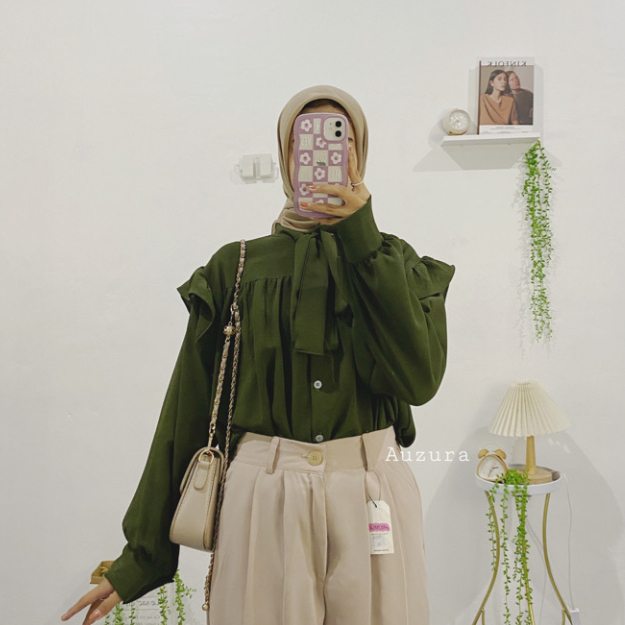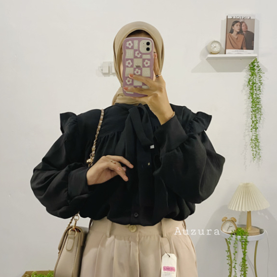 (Gratis Ongkir) Leivy Korean Blouse Airflow Crinkle atasan wanita Ruffle Pita Aesthetic