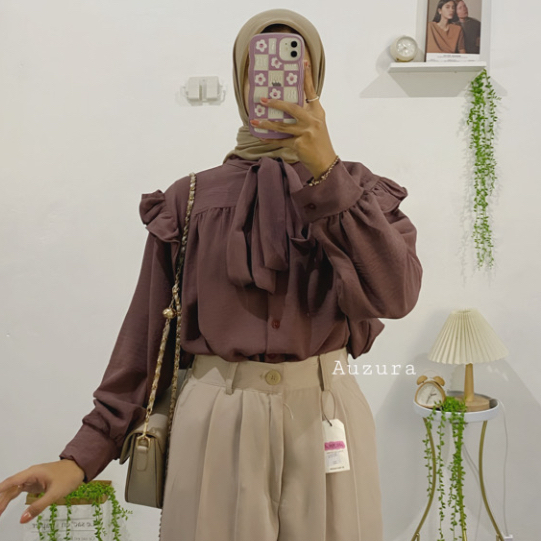 (Gratis Ongkir) Leivy Korean Blouse Airflow Crinkle atasan wanita Ruffle Pita Aesthetic