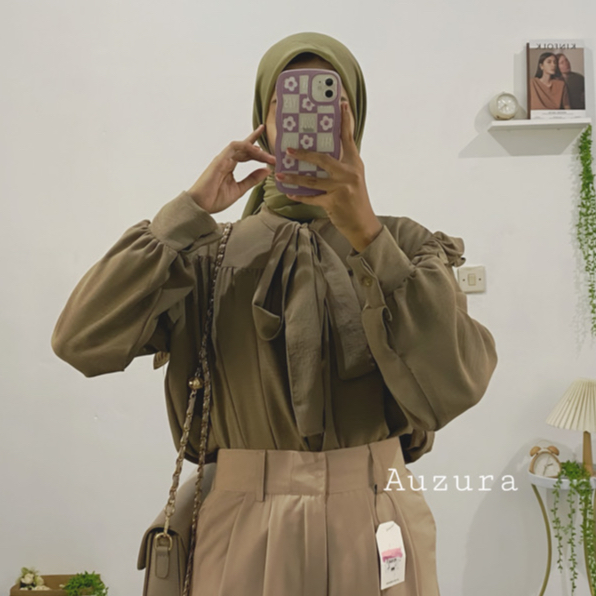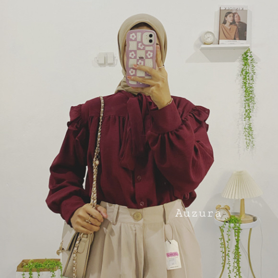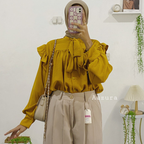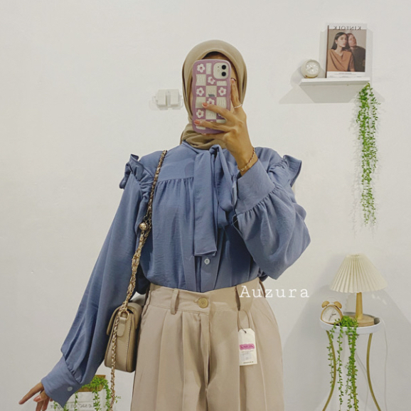 (Gratis Ongkir) Leivy Korean Blouse Airflow Crinkle atasan wanita Ruffle Pita Aesthetic