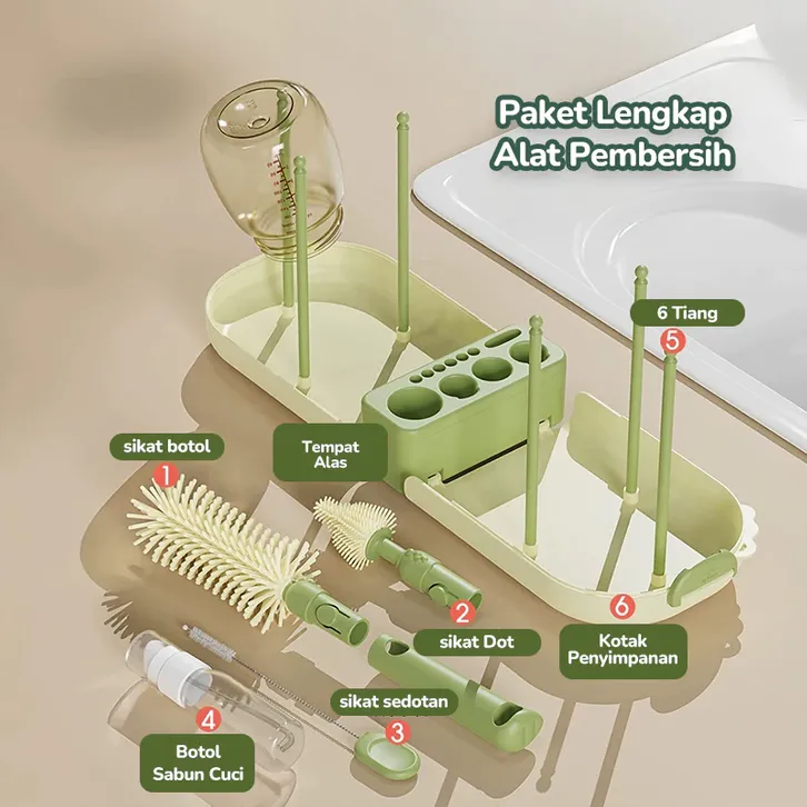 PROMO Momosee Sikat Botol Bayi 6 in 1 Set Travelling Sikat Botol Susu Portable Multifungsi BPA Free XH055
