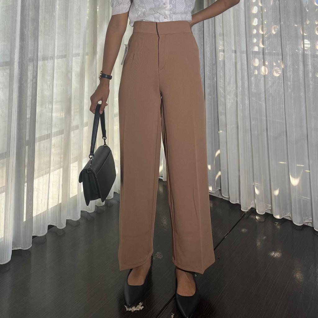 (Gratis Ongkir) Cozie Pants | Highwaist Cullote Pants - Rib Knit Pants - Hitam & Cream - Celana Anti Kusut
