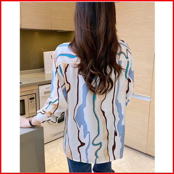 Kualitas Tinggi Sifon Biru Bergaris Kemeja Wanita Lengan Panjang Fashion Korea Atasan Kasual Kerja Sehari-hari