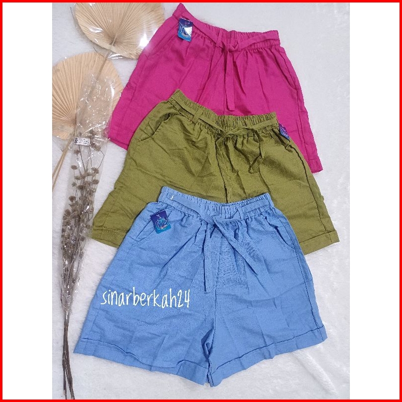 Celana Hotpans Wanita Bahan Linen - Celana Santai - Celana Pendek Wanita Pinggang Karet