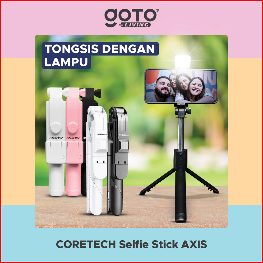 Coretech Axis Tripod Tongsis Bluetooth Remot Selfie Stick Led Flash