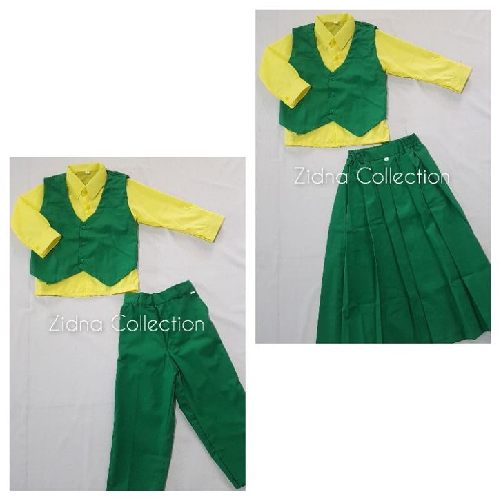 SETELAN HIJAU KUNING ROMPI PANJANG Celana dan Rok Seragam Sekolah Playgroup TK SD MI