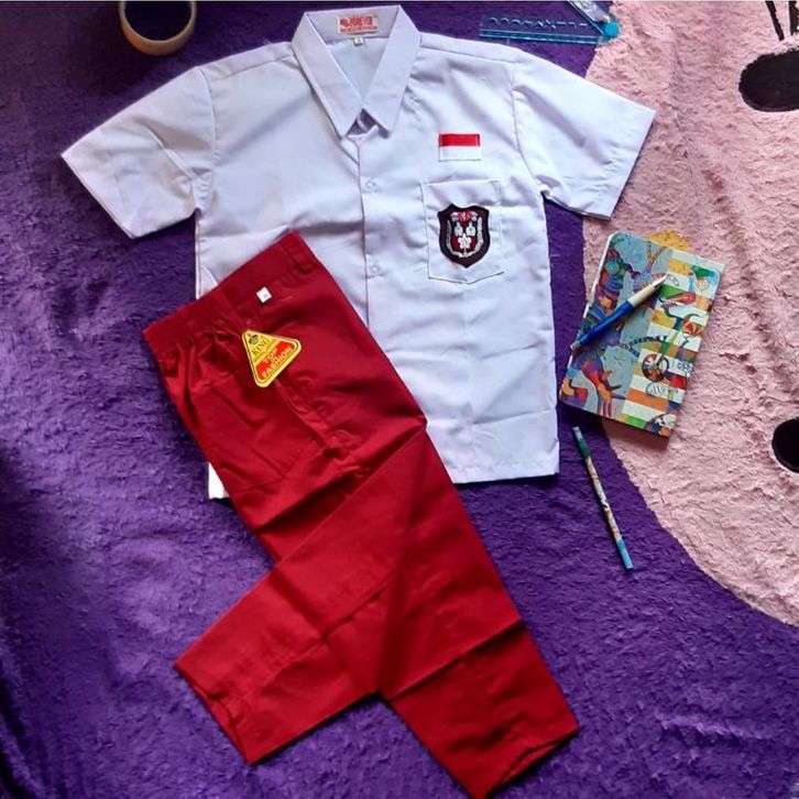 SERAGAM SD SETELAN LAKI LAKI KEMEJA PENDEK DAN CELANA PANJANG