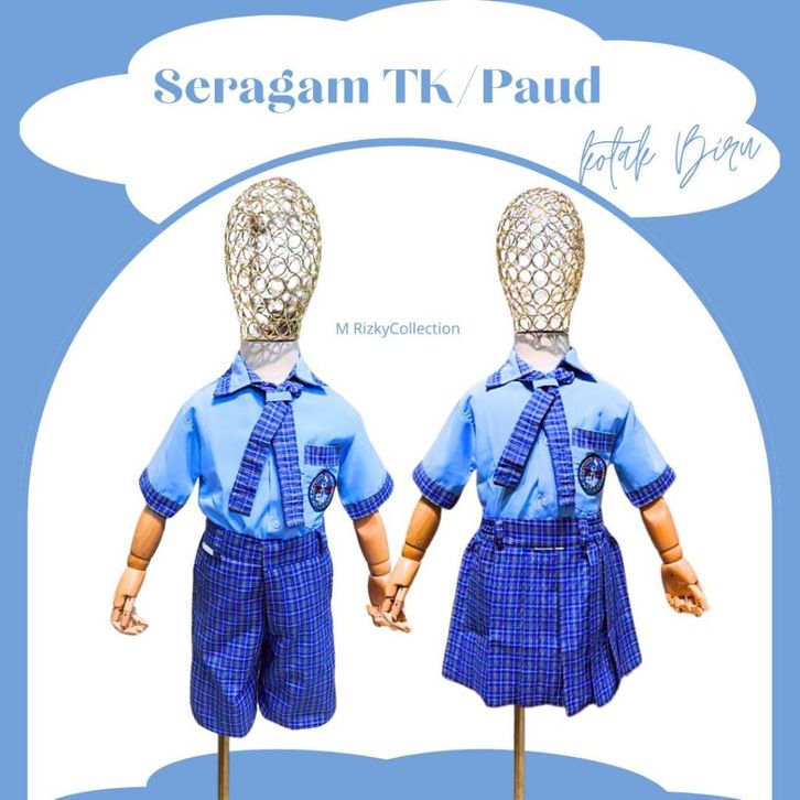 Set Seragam Kotak-Kotak Biru TK/Paud Nasional Laki-Laki dan Perempuan Panjang/Pendek