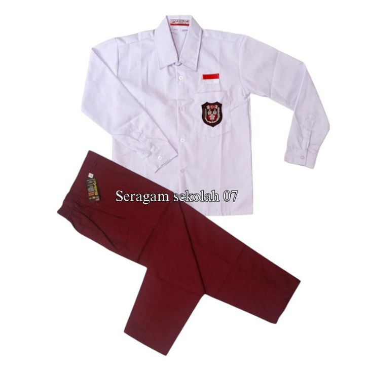 Setelan Seragam Merah Putih Sekolah SD Laki-laki Baju Lengan Panjang Celana Panjang set Lengkap kelas 1-6