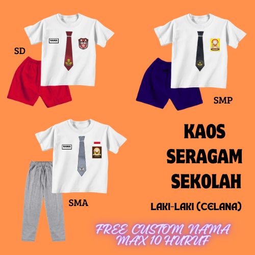 Setelan Seragam Sekolah SD, SMP, SMA Free Nama Untuk Bayi dan Anak Laki-Laki Katun Combed 30s