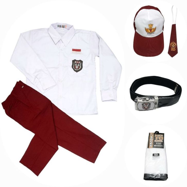 Setelan Seragam Sekolah SD Merah Putih Laki-laki Lengan Panjang Celana Panjang Super Lengkap Kelas 1-6 SD